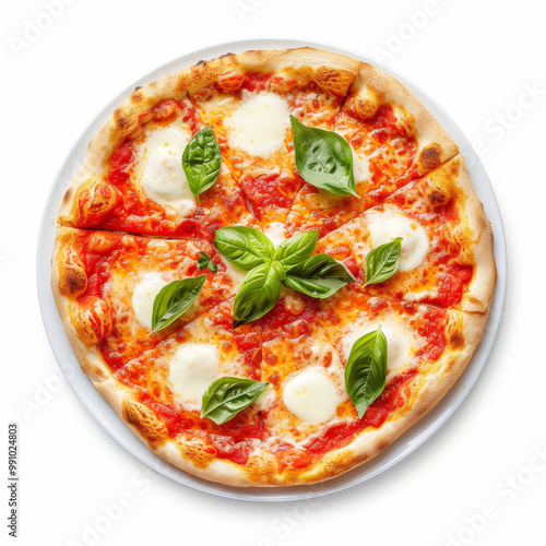 Delicious Margherita pizza with fresh basil and mozzarella cheese, top view