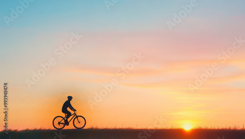 Cinematic silhouette of a cyclist riding during a vibrant sunset over a serene landscape capturing freedom and adventure