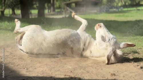 Brown and Black Goat Stands Calmly in a Barnyard Setting, Looking at the Camera, in Slow-Motion