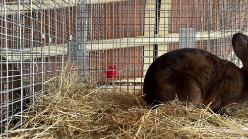 Brown and Black Goat Stands Calmly in a Barnyard Setting, Looking at the Camera, in Slow-Motion