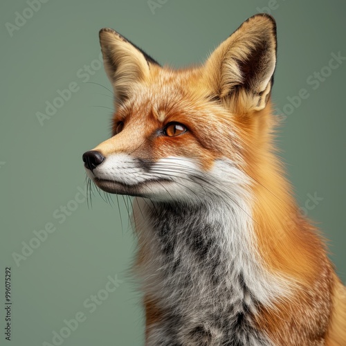 Studio portrait of a red fox showcasing its vibrant orange fur and striking features against a soft background