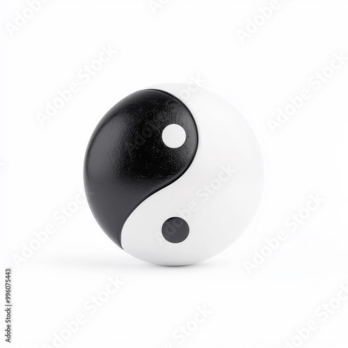Elegant 3D yin-yang symbol design representing balance and harmony in black and white visual artistry