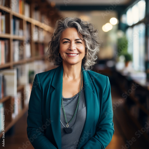Confident Middle-Eastern businesswoman smiling in professional office setting