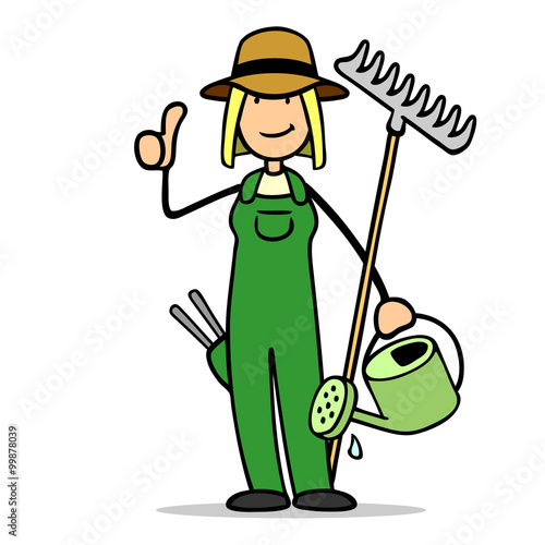 Frau als Gärtnerin hält Schild hoch