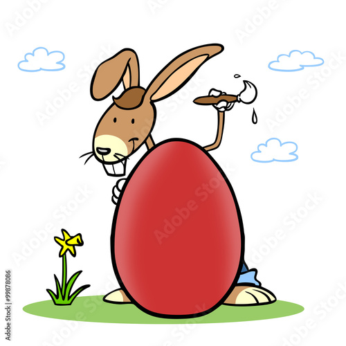 Cartoon Osterhase zu Ostern bemalt Osterei