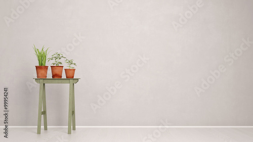Eykalyptus als Topfpflanze in Küche vor Wand