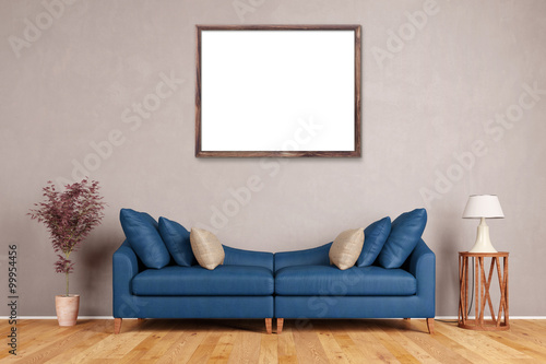 Modern interior design with a poster frame above a stylish sofa