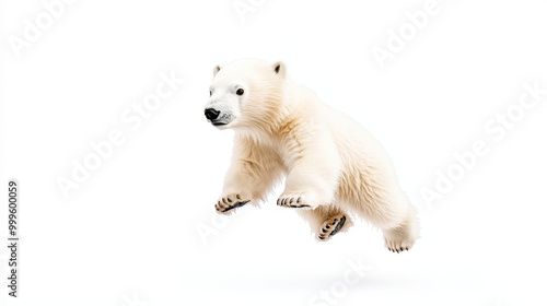 Adorable polar bear floating in the sky with a whimsical white background creating a magical animal fantasy scene