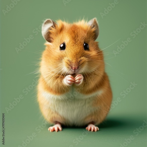 Adorable hamster portrait in studio capturing a cute and fluffy pet against a soft green background